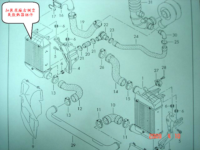 2009.04.29 Audi A4 1.8T (2001~2005)年原廠右側進氣冷卻器套件組。